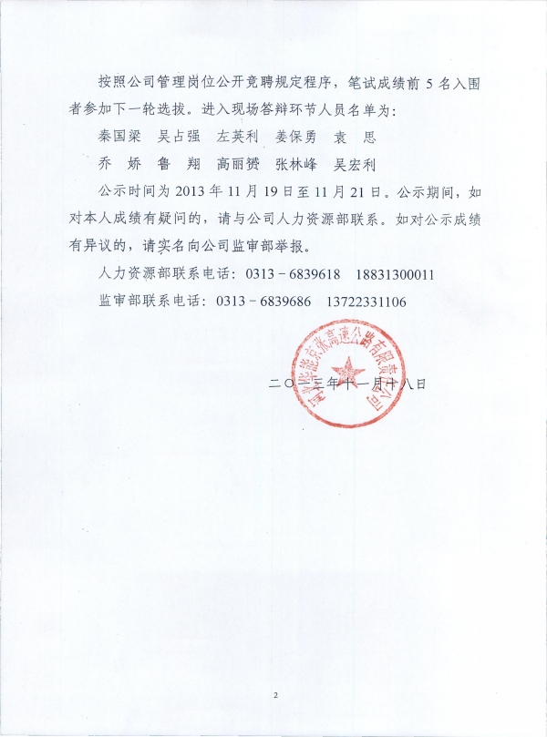 管理崗位公開(kāi)競(jìng)聘筆試成績(jī)及入圍名單公示