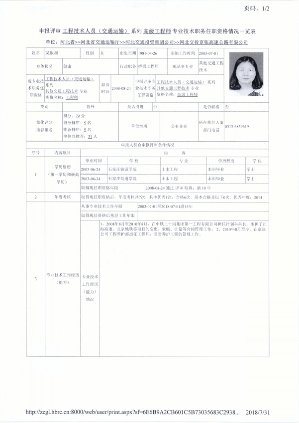 京張公司2018年度專業(yè)技術職稱申報公示(吳銀利)