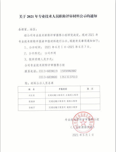 關于2021年專業(yè)技術(shù)人員職稱評審材料公示的通知